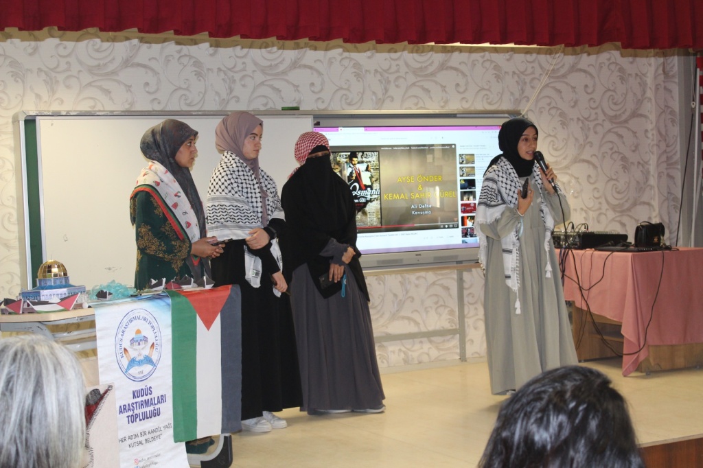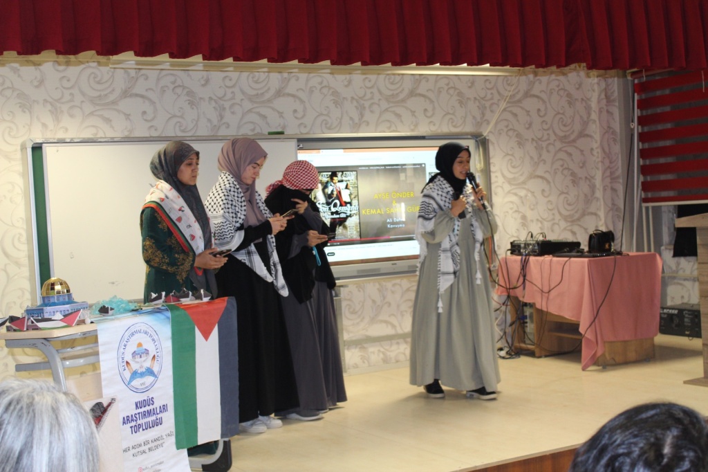 Gazze' de yaşanan soykırıma karşı okulumuzda etkinlikler yapıldı. Tüm dünyanın gündeminde olan ve İsrail devletinin yapmış olduğu sıykırıma karşı tepkimizi göstermek, her daim Filstin ve Gazze halkının yanında olduğumuzu belirtmek için okulumuz öğrencileri pano hazırlamış, okul öğretmnelerimiz ise bilgi vererek farkındalık oluşturumaya çalışmıştır.
